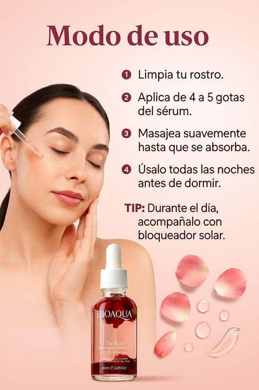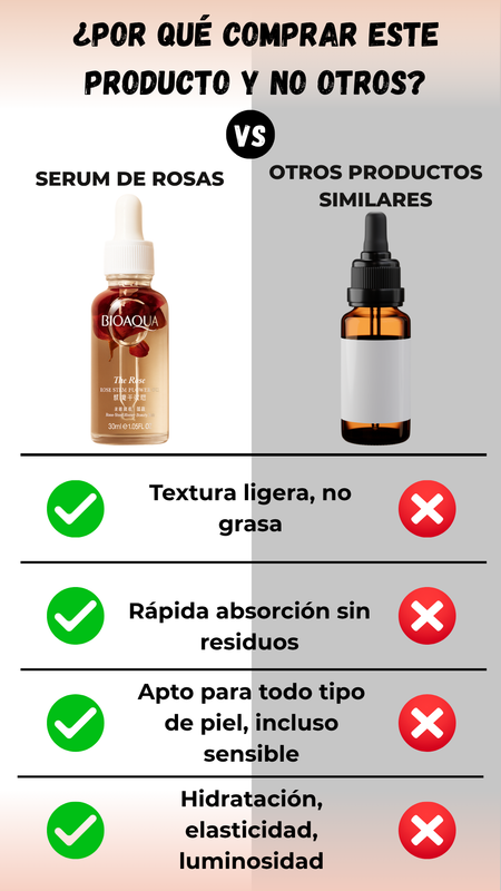 LEl Serum de Rosas es apto para todo tipo de piel, incluyendo piel sensible. Su fórmula hidratante y ligera se adapta sin causar irritación ni sensación grasosa.